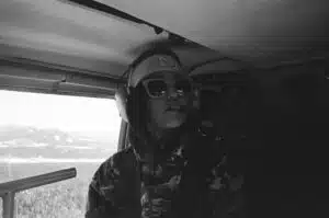 Anne surveys cultural sites from a helicopter (photo submitted).
