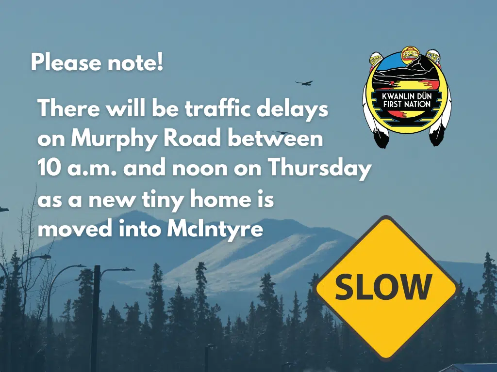 There will be traffic delays on Murphy Road between 10 a.m. and noon on Thursday, March 30 as a new tiny home is moved into McIntyre.