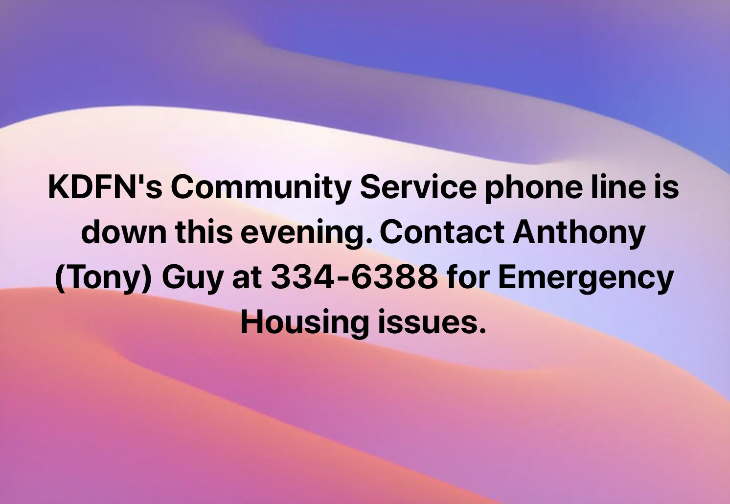 Please contact Anthony (Tony) Guy at 334-6388 for Emergency Housing issues.