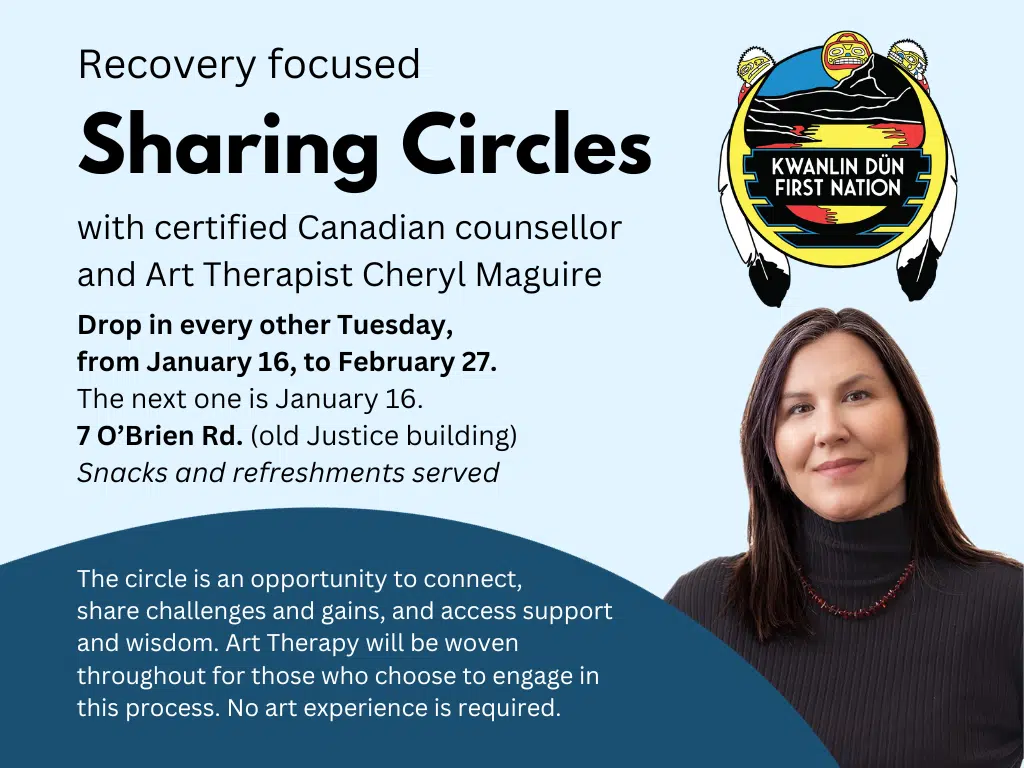 Drop in to the recovery focused sharing circles every other Tuesday, from January 16, to February 27.