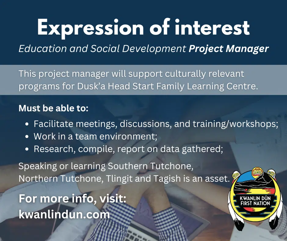 This project manager will support culturally relevant programs for Dusk’a Head Start Family Learning Centre.