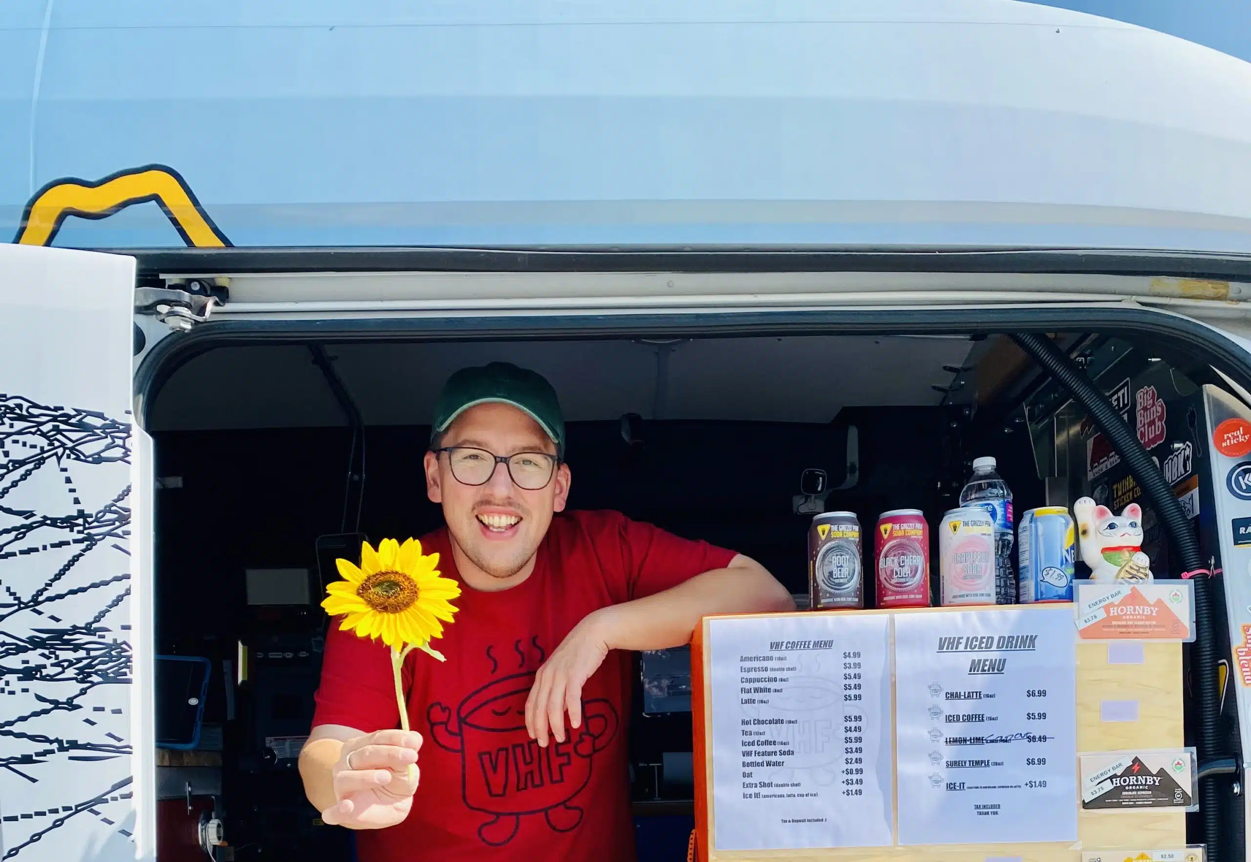 At the heart of it all, is a fully loaded coffee van, which Shawn put together himself. Equipped with espresso machines, pumps, water heaters, and more, the vehicle is always ready to serve up a fresh cup.