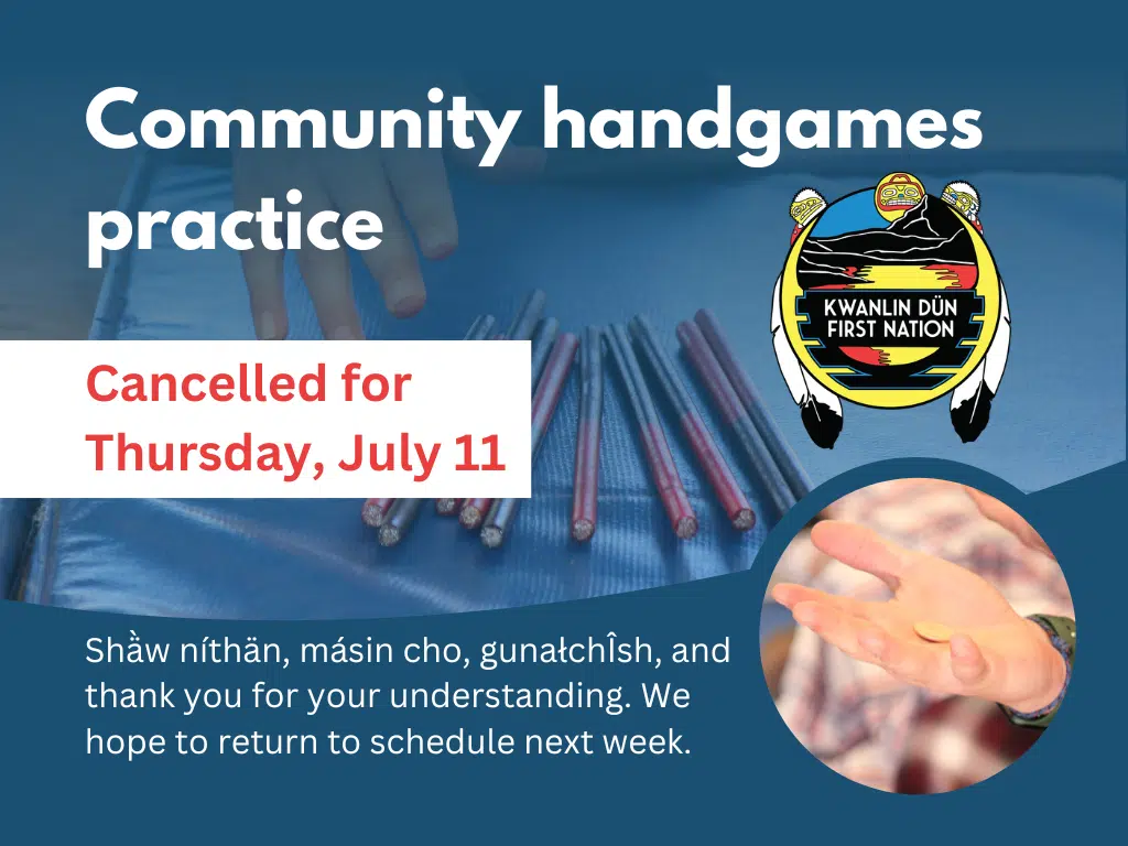 Community handgames practice for Thursday, July 11 has been cancelled.